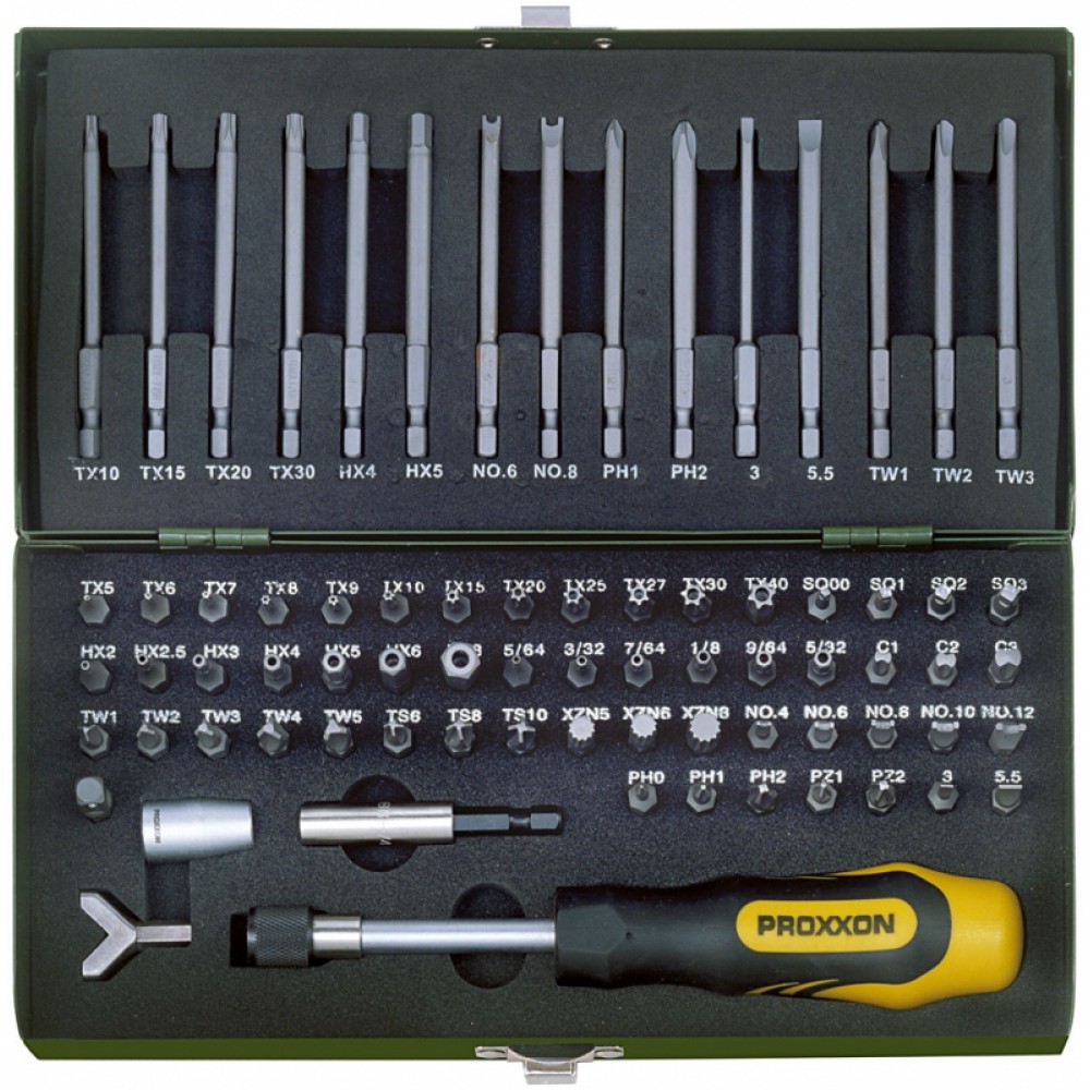 Описание: биты изготовлены из хром-кремний-марганец-ванадиевой стали. Набор хранится в стальном боксе с замком. Внутри вкладыш из полипропилена, стойкий к деформации, обеспечивает отличную фиксацию всех элементов.