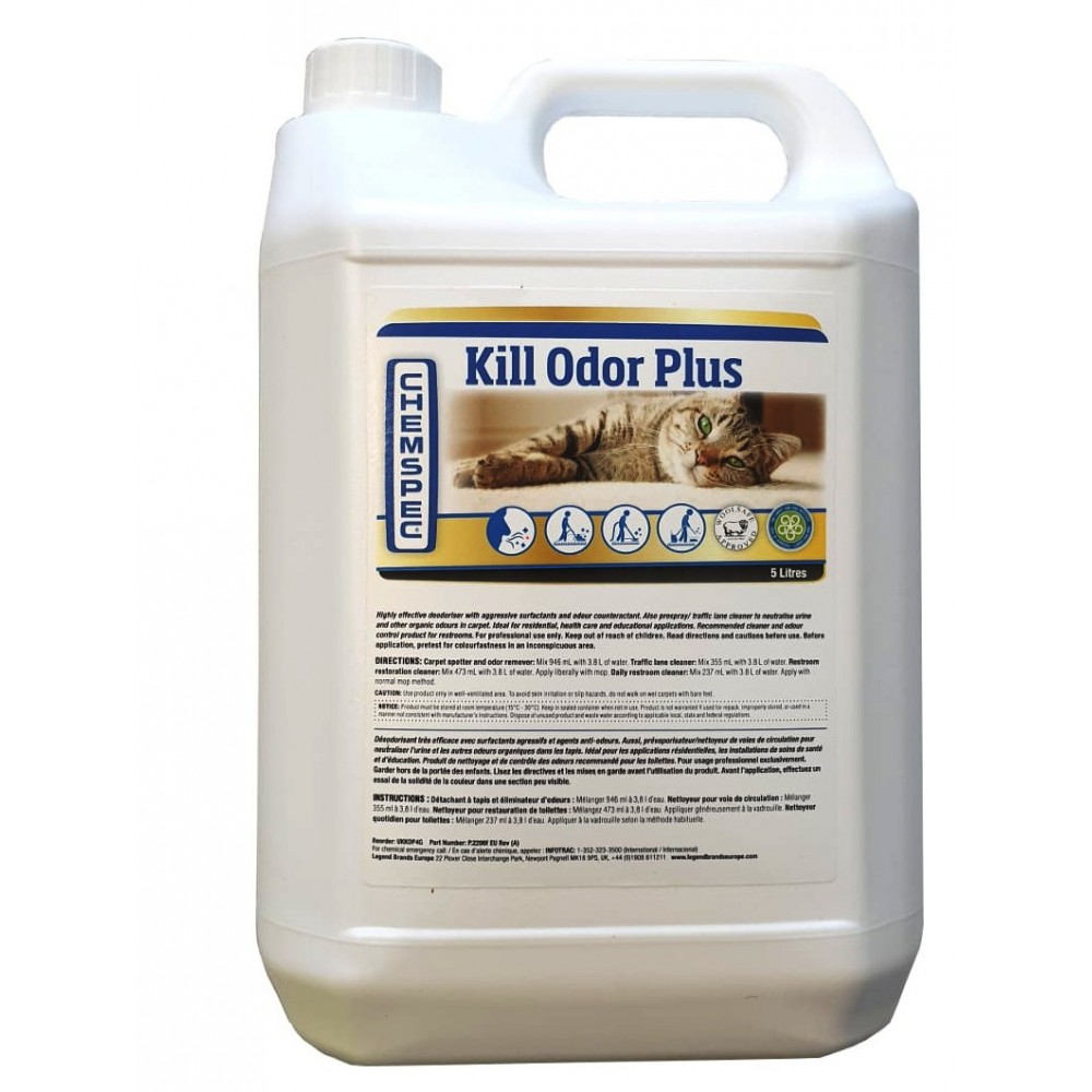 Kill Odor Plus – замечательный продукт со многими уникальными свойствами. Средство отделяет и эмульсифицирует (переводит в эмульсию) жирные загрязнения, нейтрализует запахи и подходит как для ворсовых, так и твердых поверхностей.Обьем - 3,8 л.