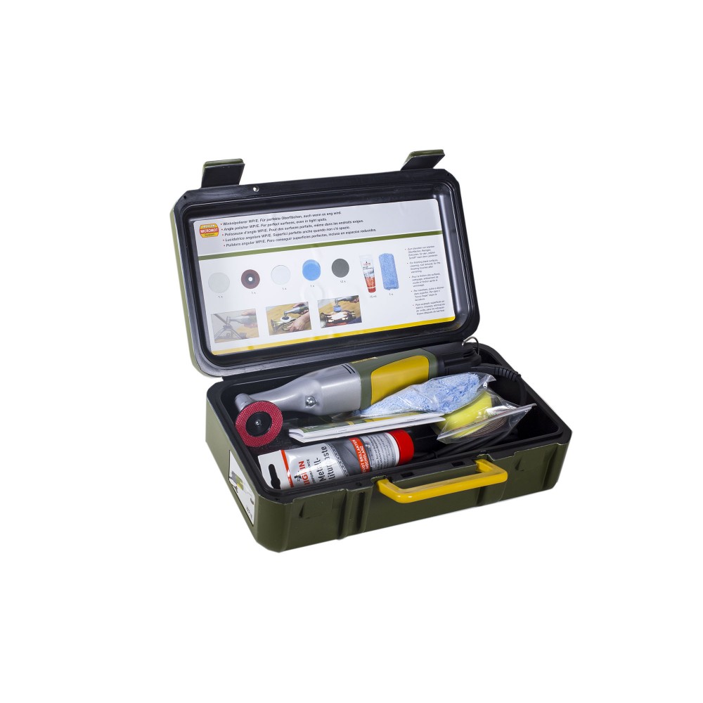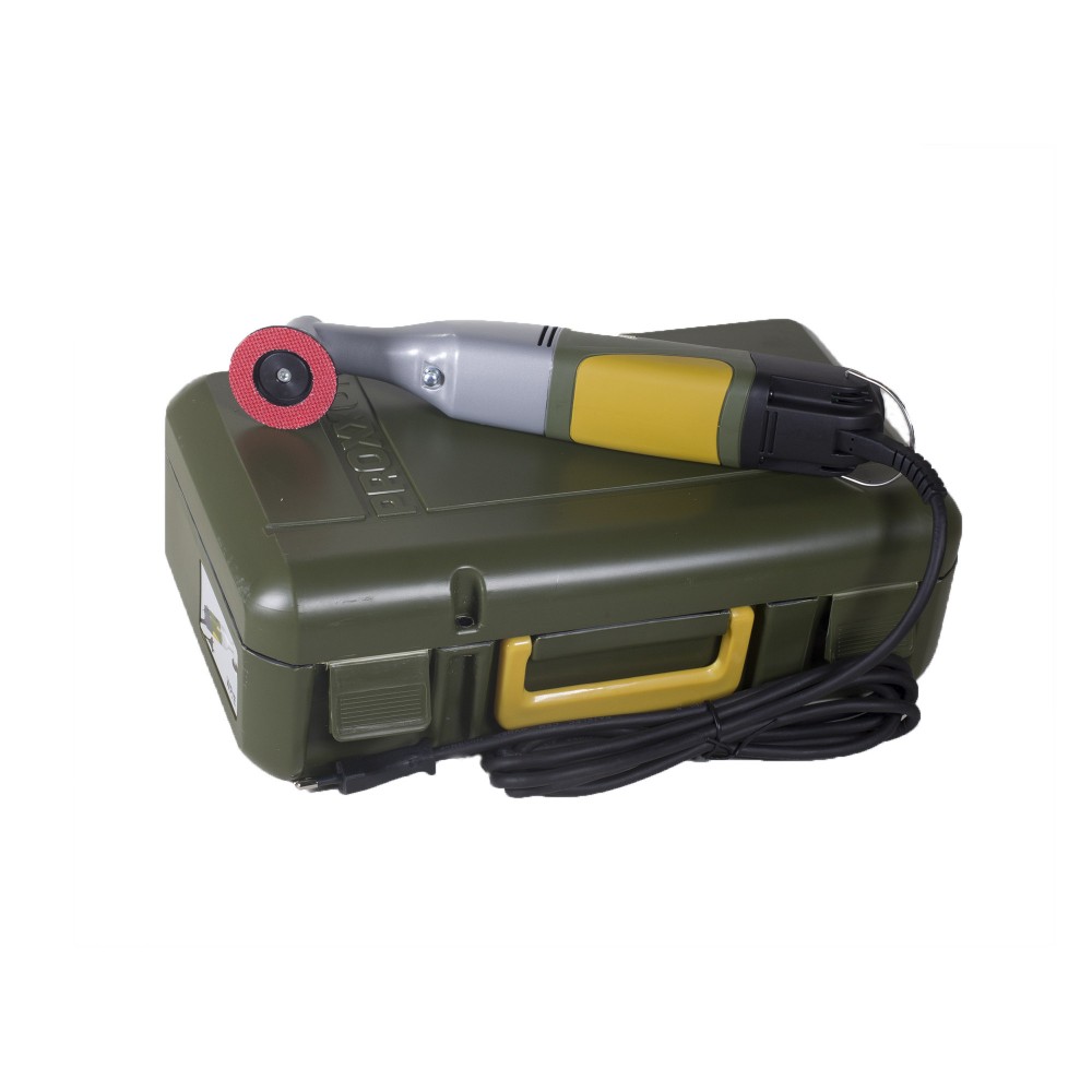 Редуктор головки изготовлен из литого под давлением алюминия, корпус из полиамида, усиленного стекловолокном с резиновыми вставками. Скорость вращения можно устанавливать в диапазоне от 800 до 2500 об/мин. Машинка работает с полировальными кругами диаметром до 50 мм. Дополнительно, в нашем магазине, можно купить переходник для Proxxon WP/E. Он очень эффективен при полировке труднодоступных мест, таких как, зона под ручками, бампером и т. п.