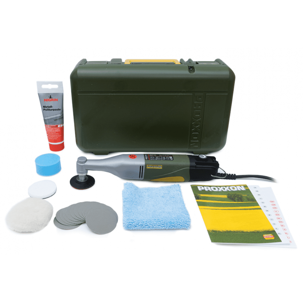 Устройство применяется при финальной полировке после нанесения лака. С чистой поверхности отлично устраняет следы пыли, разнообразного налета. Двигатель устройства работает удивительно тихо, что не мешает ему быть достаточно мощным. Максимальная мощность 100 Вт. Еще одна сильная сторона Proxxon WP/E — возможность плавного изменения скорости с помощью электронного регулятора.